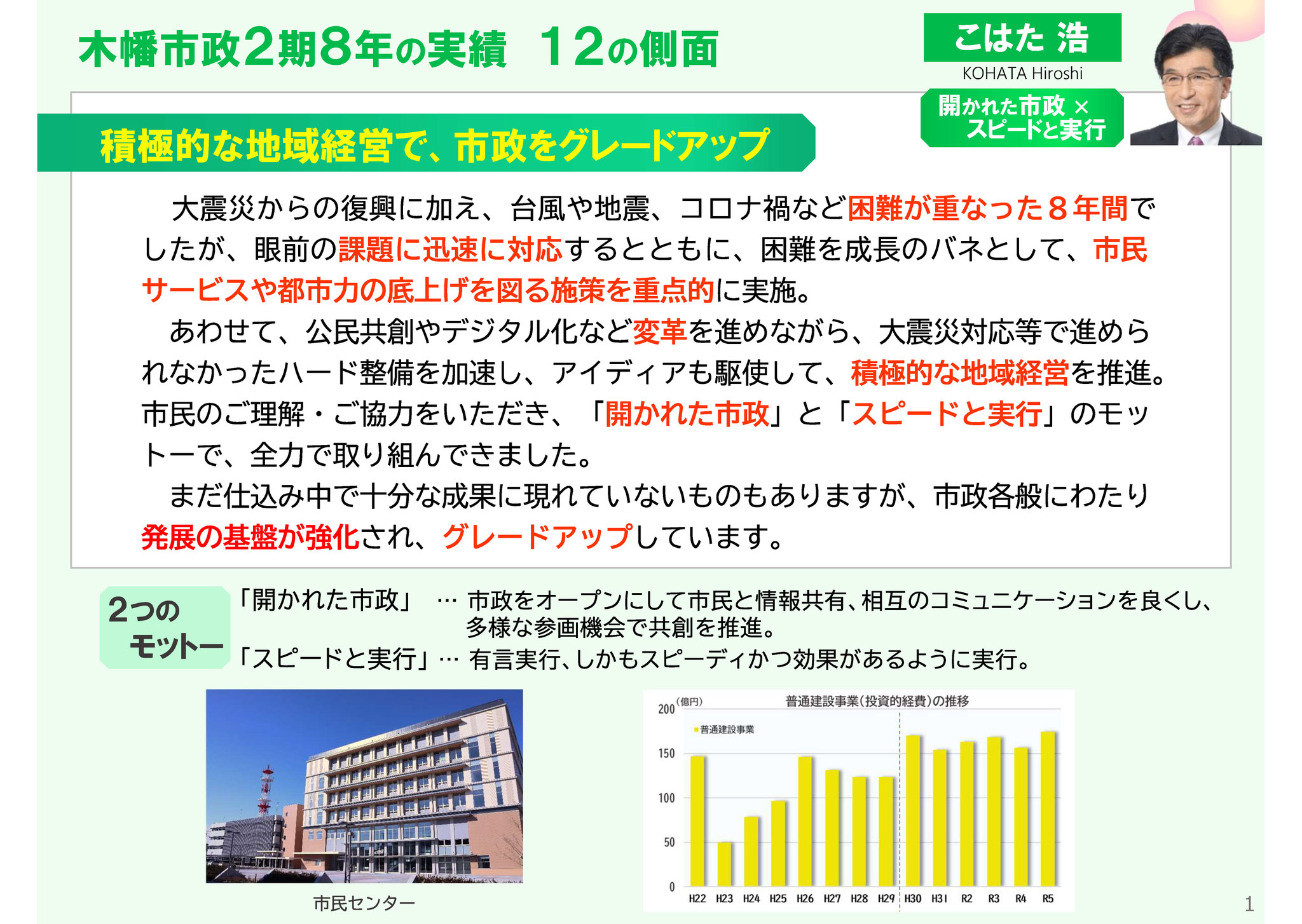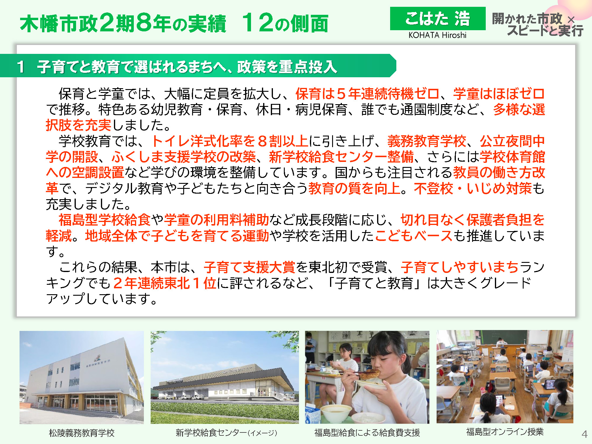 1. 子育てと教育で選ばれるまちへ、政策を重点投入