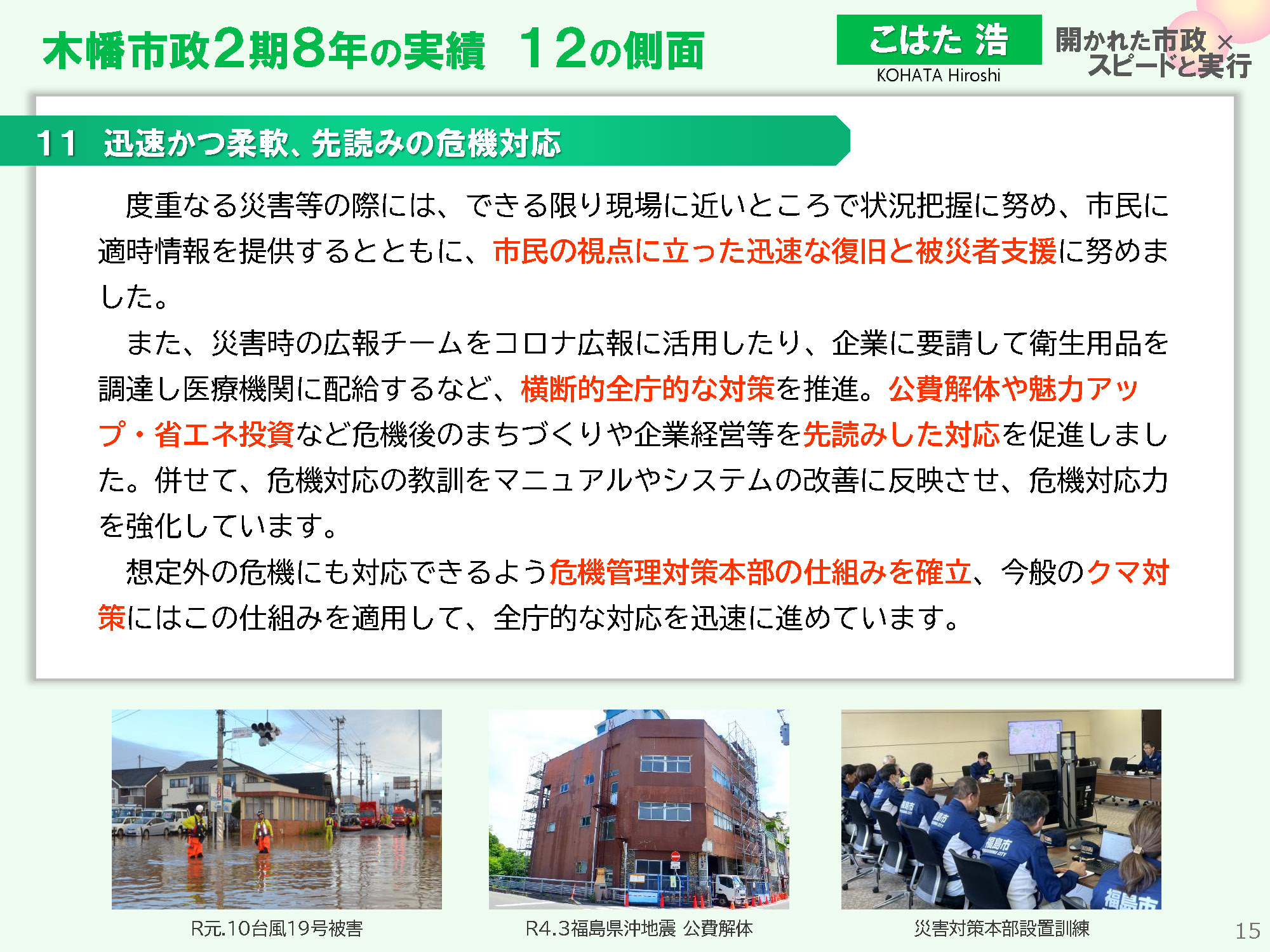 市民の視点に立った迅速な復旧と被災者支援、全庁横断的な危機対策を実施