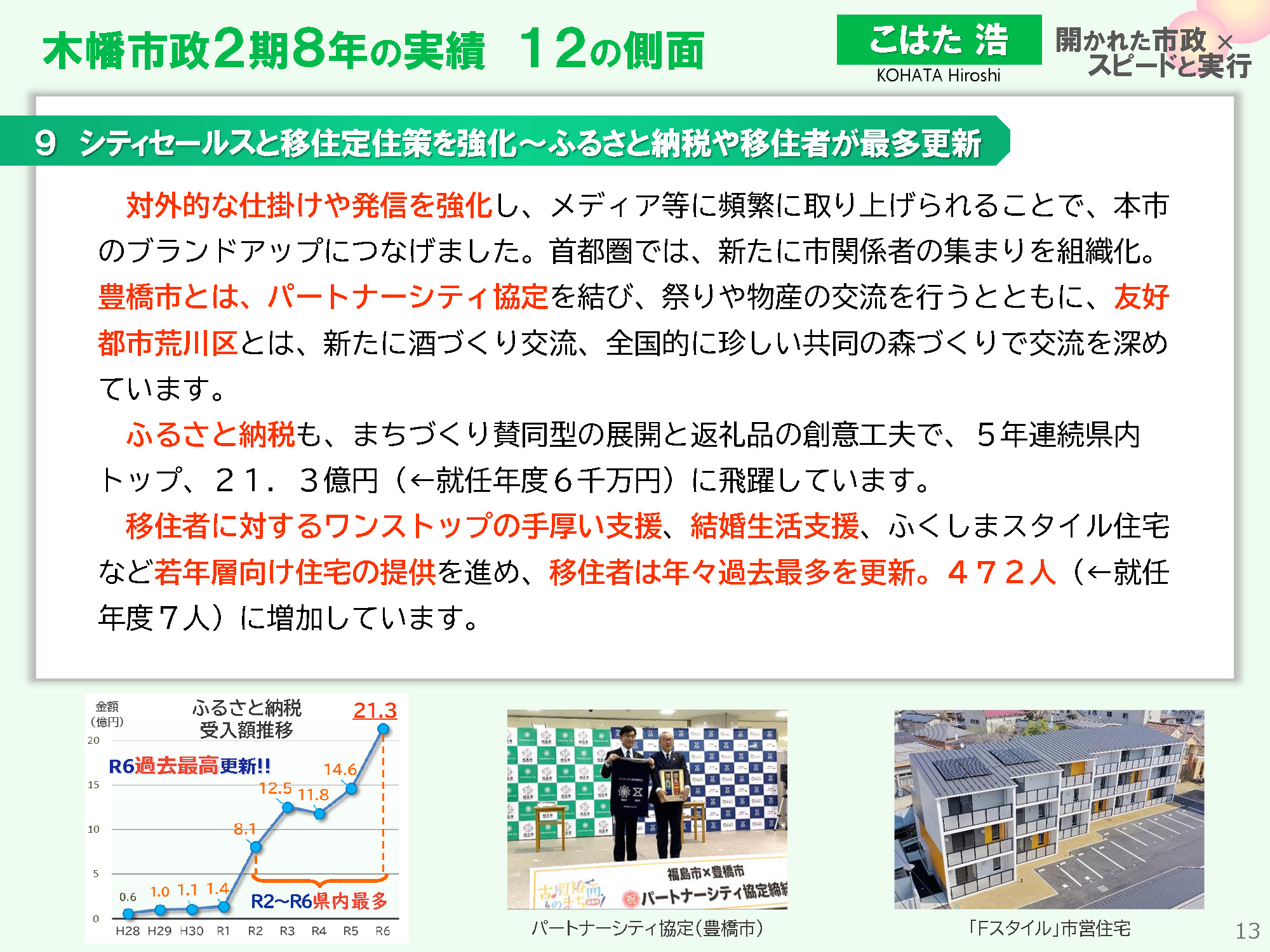 9. シティセールスと移住定住策を強化~ふるさと納税や移住者が最多更新